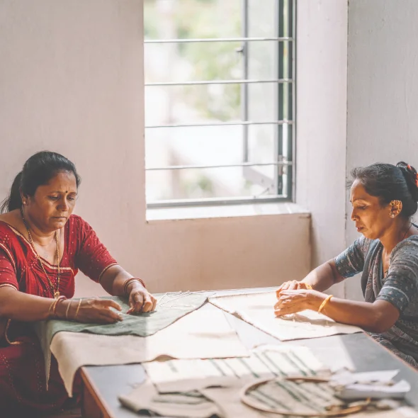With Jalpa’s NIFT training and Jaldhini’s creative leadership, the platform nurtures women entering the craft world, many for the first time. Through guided learning, they gain skills, dignity, and income, transforming hidden potential into visible work. Every piece tells a story of growth and care, with proceeds also supporting children’s education stitching together design and social impact.