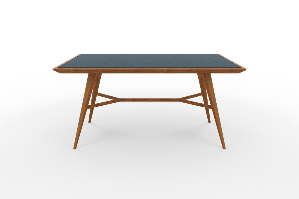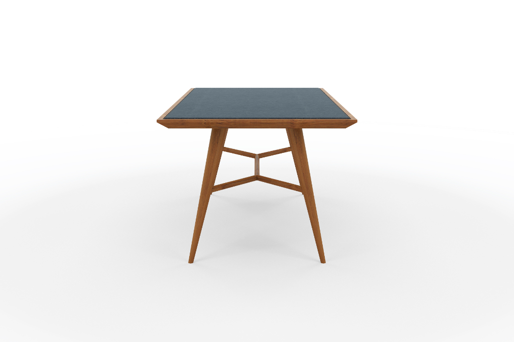 Aurum is a refined mid-century modern dining table featuring elegant tapered legs and a sleek stone surface, crafted to balance aesthetics, functionality, and timeless craftsmanship in any modern interior.