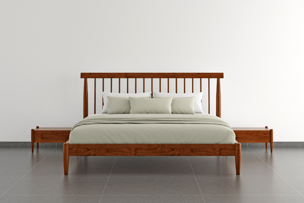 The Grigio Bed is a study in balance — where structure meets softness. Its slender wooden bars trace a refined rhythm along the headboard, giving the piece a light, graceful presence. Crafted entirely in solid teak, the design blends precision with warmth, making it both timeless and contemporary. Subtle yet striking, the Grigio Bed transforms simplicity into sophistication — a quiet statement for the modern home.