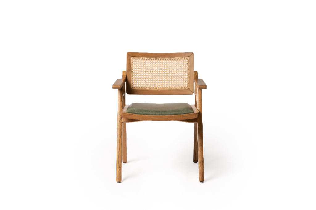 The design of the Muse Dining Chair celebrates contrast: the natural openness of cane, the smooth solidity of teak, and the inviting softness of the cushion. Every detail, from the subtly curved backrest to the clean, refined frame, speaks of craft refined through restraint. It’s a chair designed not just for sitting, but for lingering, for moments of connection, reflection, and calm.