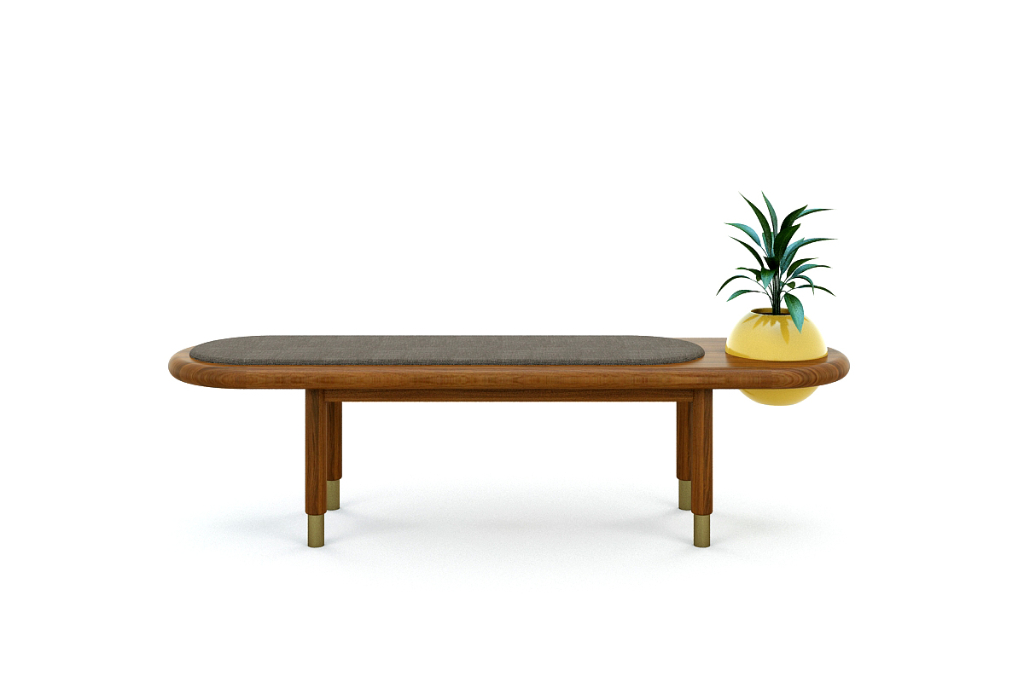 Pebble Bench redefines minimalism with soft, organic curves and a sculpted slot for a spherical pot where simplicity meets statement in a seamless design gesture