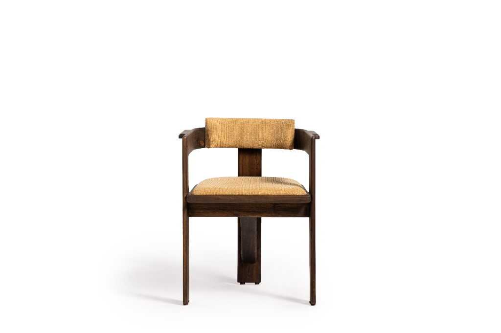 The Piatto Dining Chair brings together form and comfort in perfect conversation. With a cushioned back and sculpted teak frame, it redefines elegance through tactile softness and structural clarity. Designed with armrests for a relaxed, upright posture, it merges function with finesse, ideal for long meals, reflective work sessions, or quiet moments of pause.
