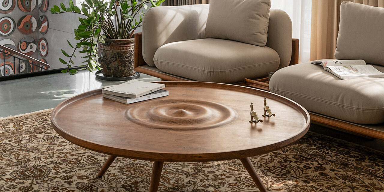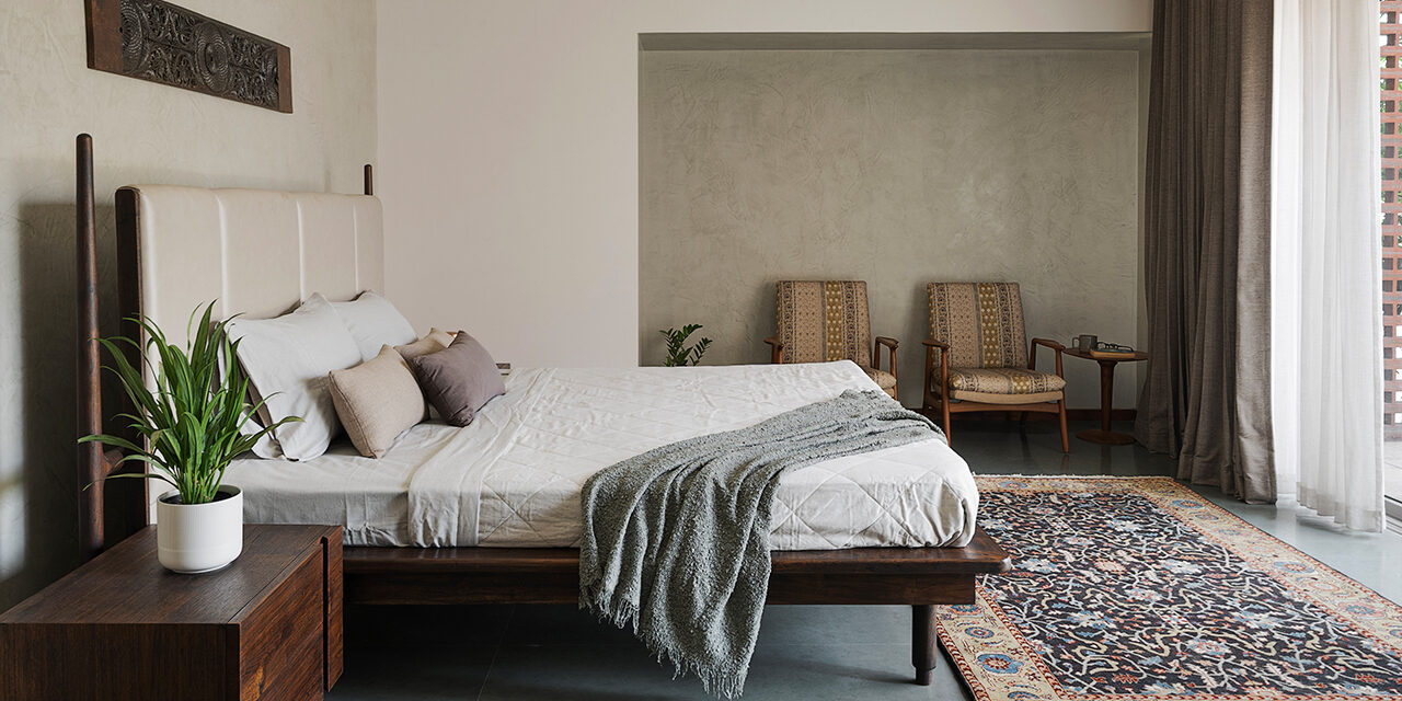 In Utsaha, the furniture—designed and manufactured by Tectona—brings cohesion and character to the home’s earthy, light-filled spaces. Crafted in natural teakwood, each piece complements the warm color palette of olive green, terracotta, and stone, blending mid-century modern design with timeless Indian sensibility.