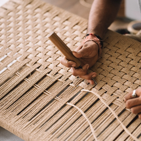 This process is fully hand-done, giving every weave a character that machines cannot replicate. Patterns may vary slightly, adding to the uniqueness of each creation. Weaving brings balance , light, airy textures against the strength of solid teak frames.